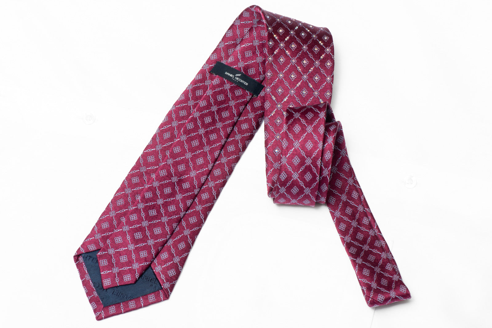 Material - Silk Design - Trellis Cor - Burgundy Comprimento - Classic (48 in.-60 in.)(145cm-153 cm) Largura - Classic (3 1/4 in.-3 3/4 in.)(8 cm-9.5 cm) Recursos especiais - Rhinestones Fornecedor - Daniel Hechter