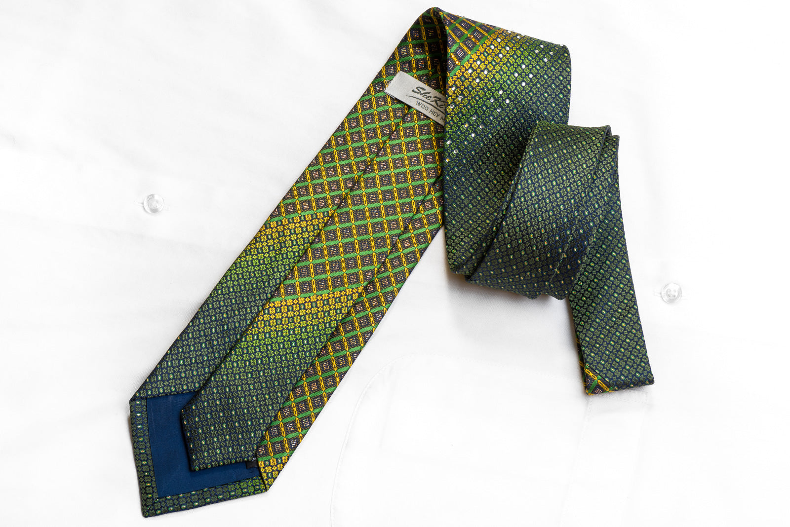 Material - Seda Design - Listrado Cor - Azul, Verde, Amarelo Comprimento - Clássico (57 pol.-60 pol.)(145 cm-153 cm) Largura - Clássico (3 1/4 pol.-3 3/4 pol.)(8 cm-9,5 cm) Recursos especiais - Strass de cristal, brilhos prateados Fornecedor - San-Dee