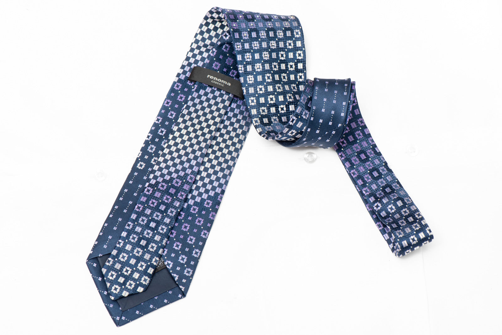 Material - Silk Design - Geometric Cor - Blue, Purple Comprimento - Classic (48 in.-60 in.)(145cm-153 cm) Largura - Classic (3 1/4 in.-3 3/4 in.)(8 cm-9.5 cm) Recursos especiais - Rhinestones, Silver Sparkles Fornecedor - Renoma
