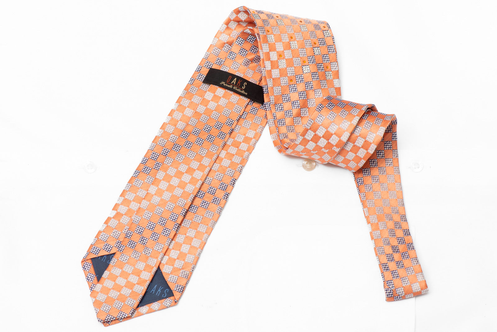 Material - Silk Design - Checkered Cor - Orange, Silver Comprimento - Classic (48 in.-60 in.)(145cm-153 cm) Largura - Classic (3 1/4 in.-3 3/4 in.)(8 cm-9.5 cm) Recursos especiais - Rhinestones, Silver SparklesRhinestones, Silver Sparkles Fornecedor - Daks