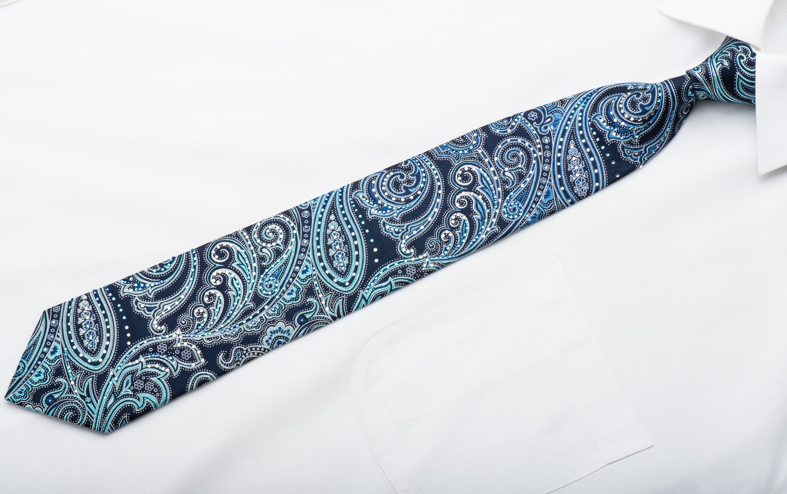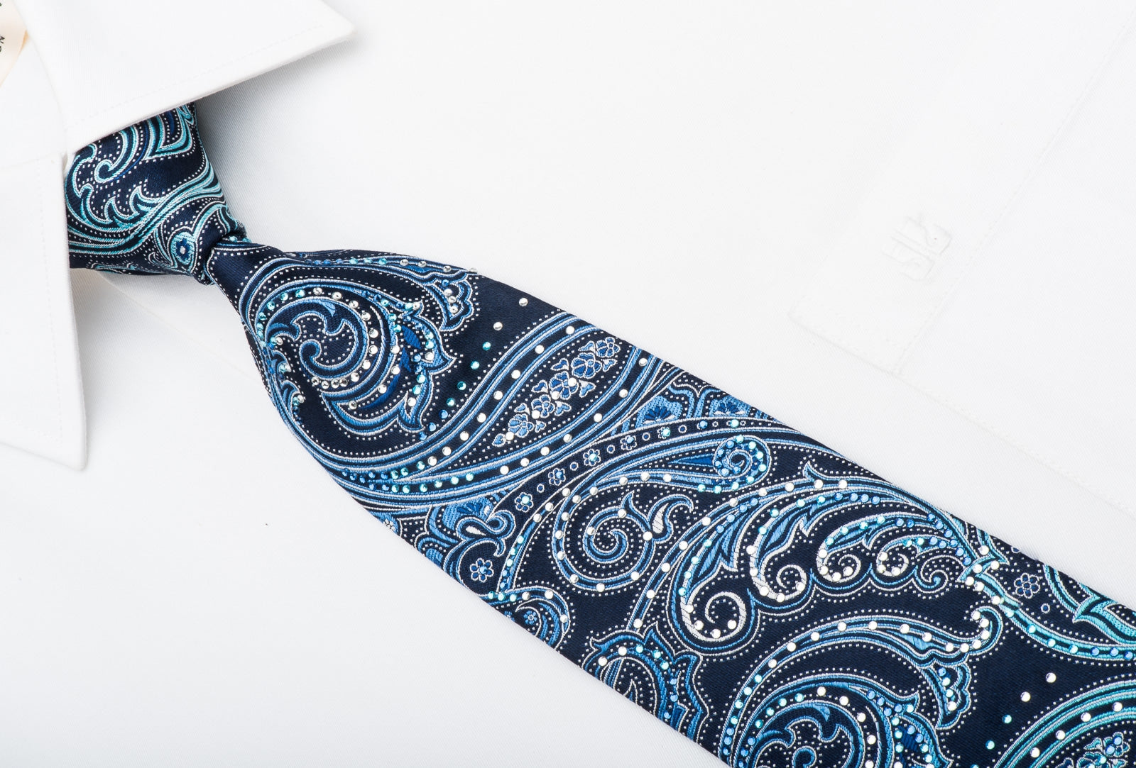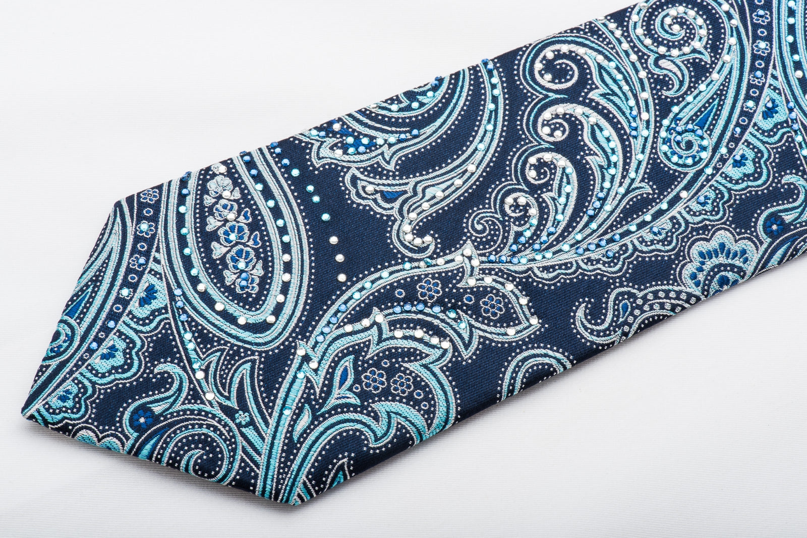 Material - Seda Design - Paisley Cor - Azul Comprimento - Clássico (57 pol.-60 pol.)(145 cm-153 cm) Largura - Clássico (3 1/4 pol.-3 3/4 pol.)(8 cm-9,5 cm) Recursos especiais - Strass Azul, Strass Branco Fornecedor - San-Dee