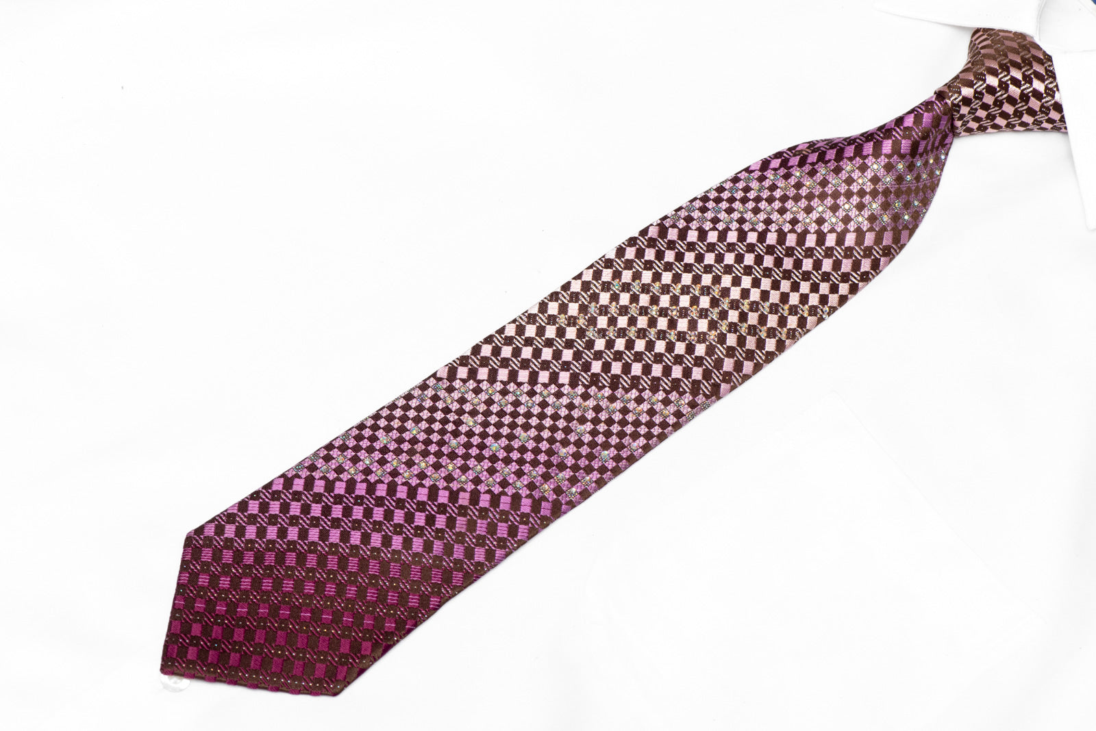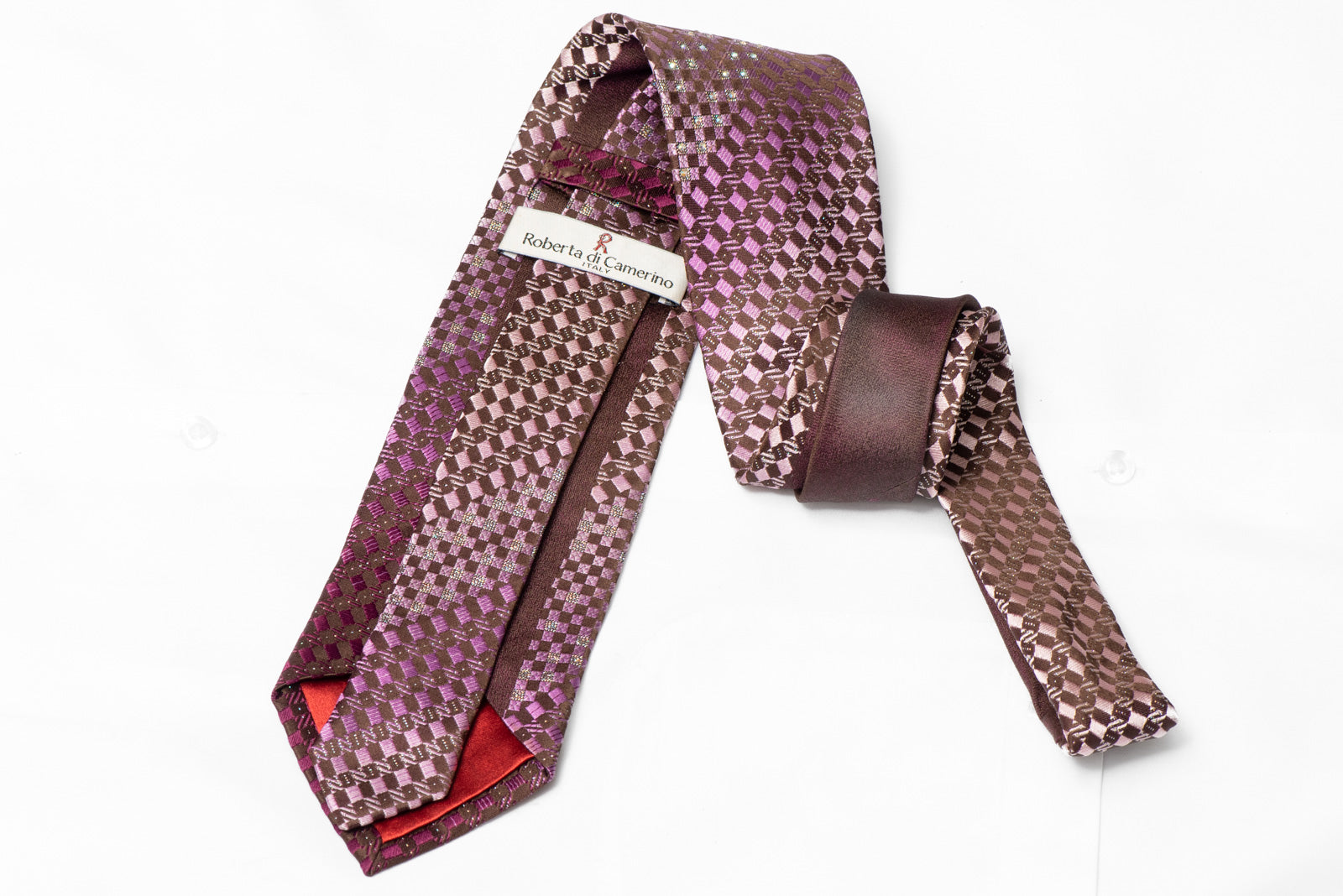 Material - Silk Design - Checkered Cor - Brown, Purple Comprimento - Classic (48 in.-60 in.)(145cm-153 cm) Largura - Classic (3 1/4 in.-3 3/4 in.)(8 cm-9.5 cm) Recursos especiais - Rhinestones Fornecedor - Roberta di Camerino