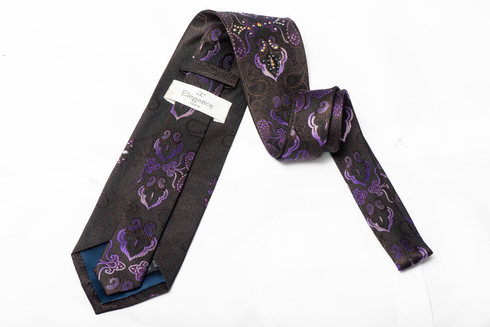Material - Silk Design - Damask Cor - Purple, Black Comprimento - Classic (48 in.-60 in.)(145cm-153 cm) Largura - Classic (3 1/4 in.-3 3/4 in.)(8 cm-9.5 cm) Recursos especiais - Rhinestones Fornecedor - Elegance