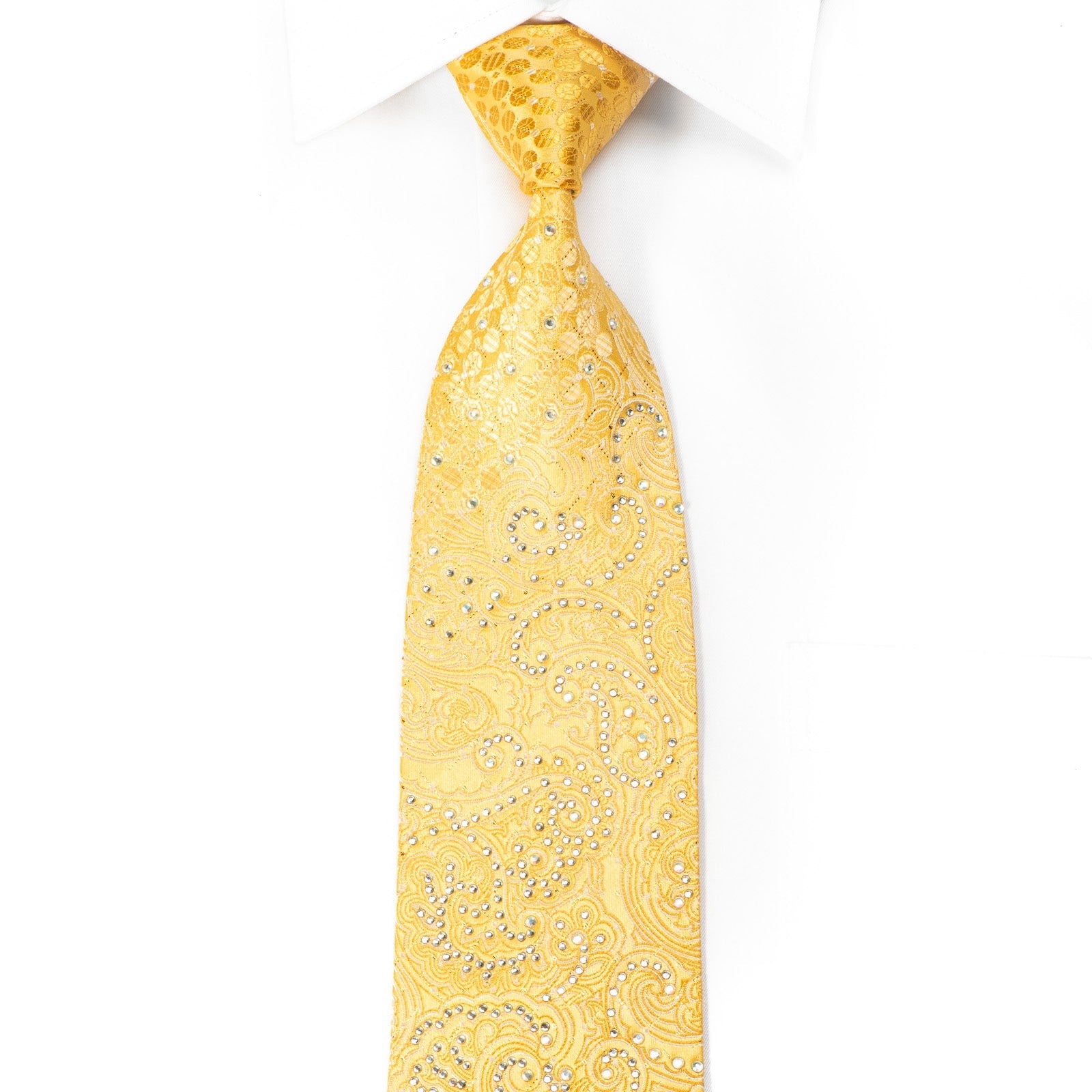 Material - Seda Design - Cor - Amarelo Comprimento - Clássico (57 pol.-60 pol.)(145 cm-153 cm) Largura - Clássico (3 1/4 pol.-3 3/4 pol.)(8 cm-9,5 cm) Recursos especiais - Strass AB, strass de cristal, brilhos dourados Fornecedor - San-Dee