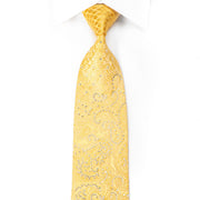 Gravata de cristal masculina linda perfeita para todas as ocasiões feita à mão da seda de melhor qualidade e projetada pela marca remizio. Apresentando um elegante design paisley tecido em amarelo, brilhante com branco claro e Crystal AB Rhinestones com brilhos dourados metálicos.