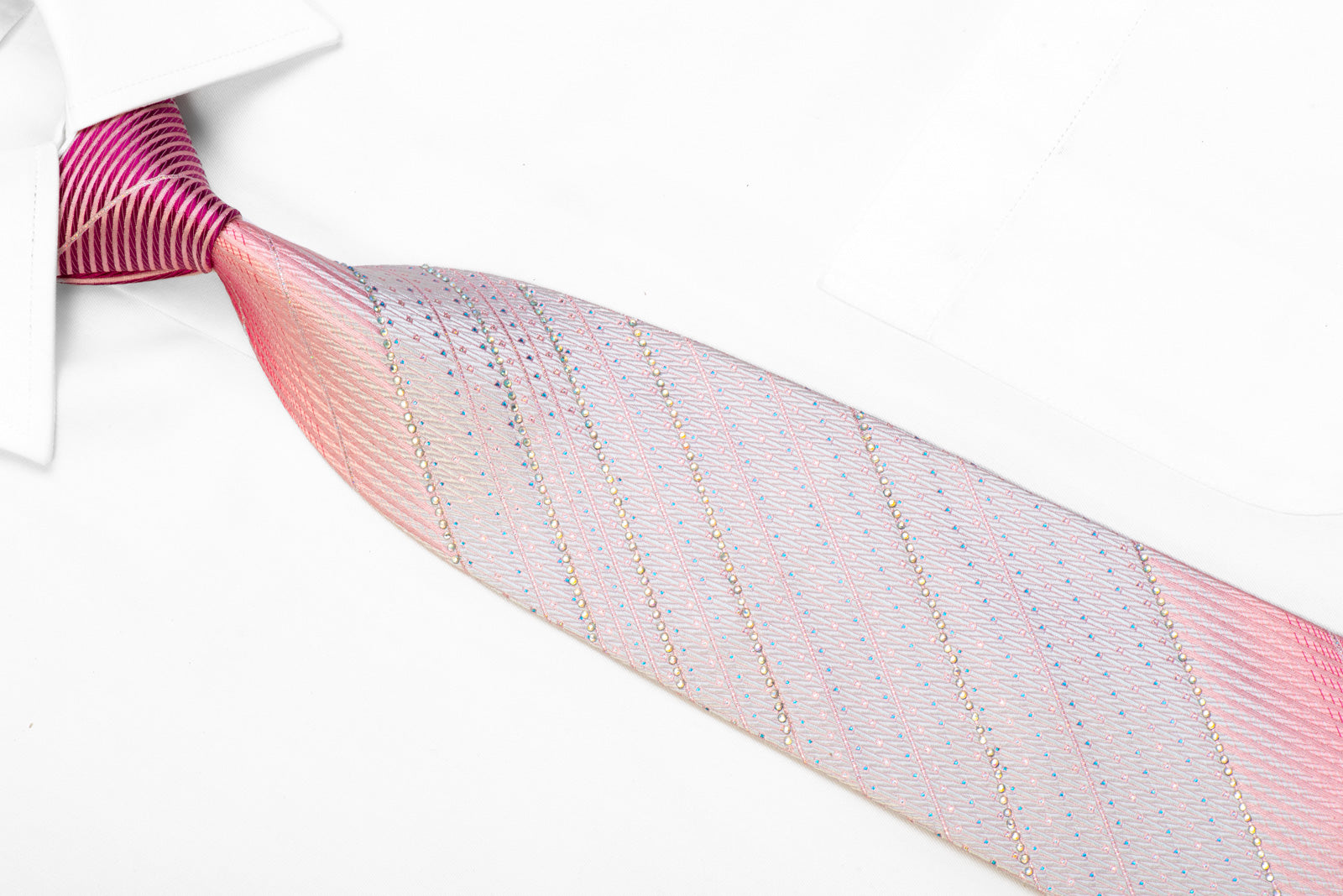 Material - Seda Design - Listrado Vertical Cor - Rosa Comprimento - Clássico (57 pol.-60 pol.)(145 cm-153 cm) Largura - Clássico (3 1/4 pol.-3 3/4 pol.)(8 cm-9,5 cm) Recursos especiais - Strass Crystal AB, brilhos azuis, brilhos rosa Fornecedor - Renoma
