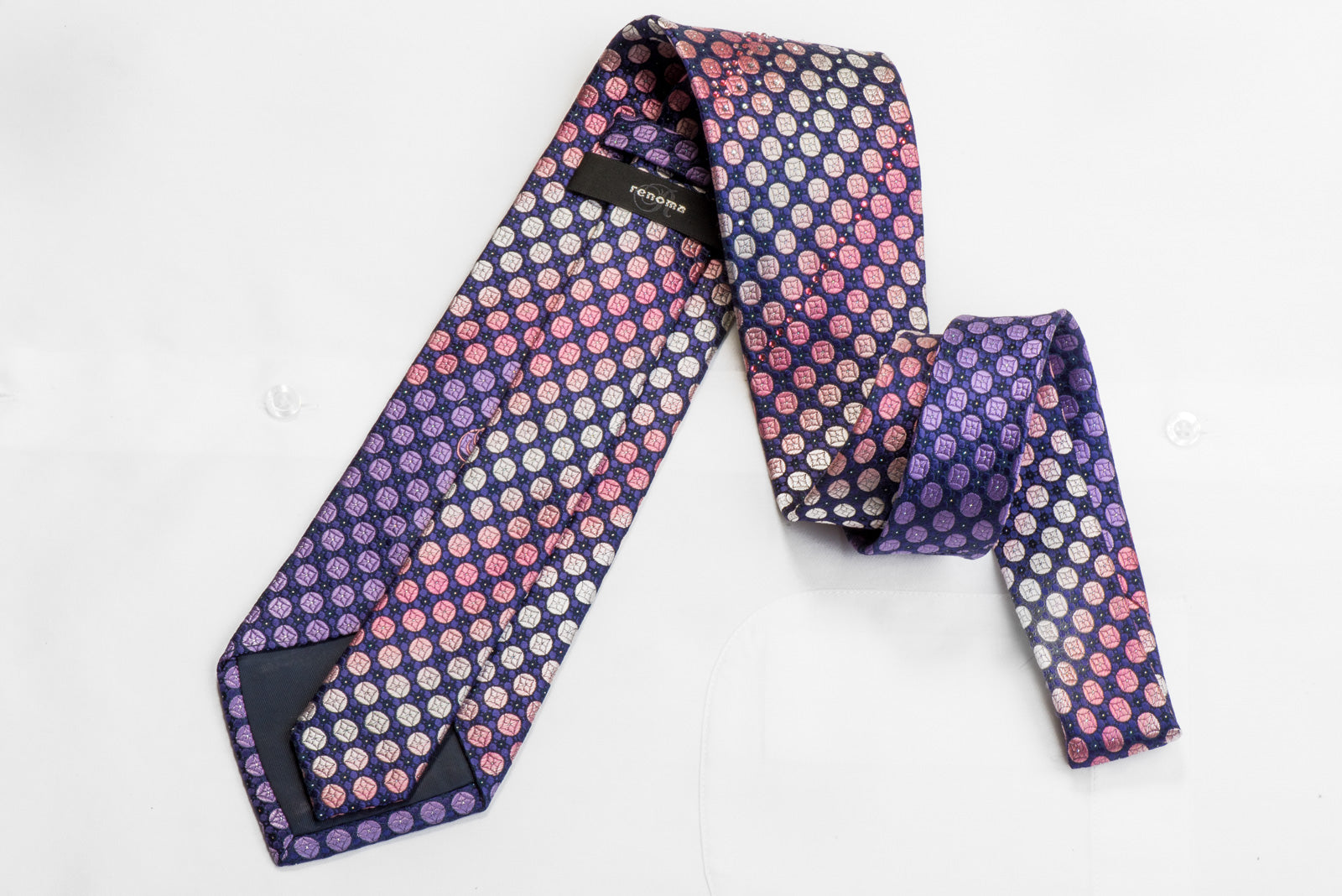 Material - Seda Design - Geométrico Cor - Marinho, Azul, Roxo Comprimento - Clássico (57 pol.-60 pol.)(145 cm-153 cm) Largura - Clássico (3 1/4 pol.-3 3/4 pol.)(8 cm-9,5 cm) Recursos especiais - Strass de cristal, strass roxos, brilhos prateados metálicos Fornecedor - Renoma