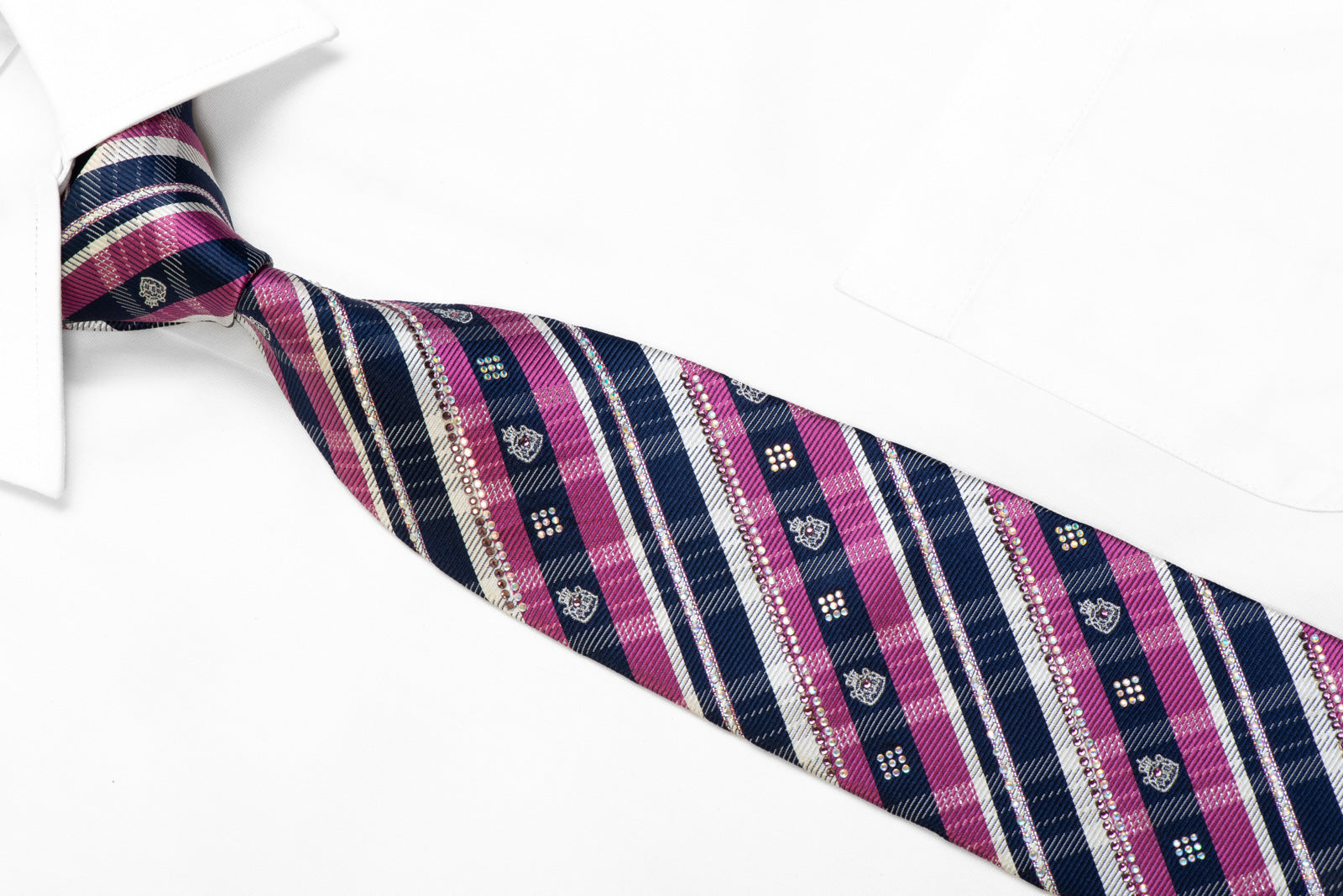 Material - Seda Design - Xadrez Cor - Rosa, azul, prata Comprimento - Clássico (48 pol.-60 pol.)(145 cm-153 cm) Largura - Clássico (3 1/4 pol.) (8,5 cm) Recursos especiais - Strass, brilhos prateados Fornecedor - Bruno Baffi