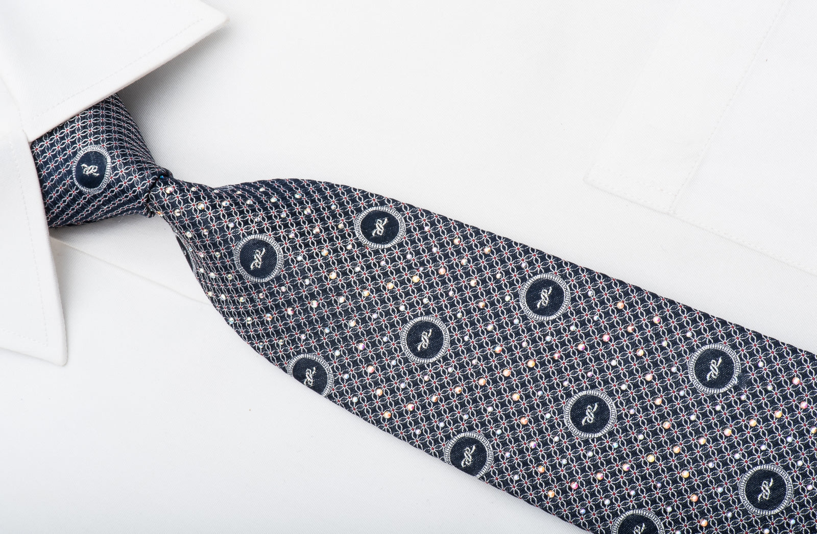 Material - Seda Design - Treliça Cor - Azul, Prata Comprimento - Clássico (57 pol.-60 pol.)(145 cm-153 cm) Largura - Clássico (3 1/4 pol.-3 3/4 pol.)(8 cm-9,5 cm) Recursos especiais - Strass Branco Fornecedor - San-Dee