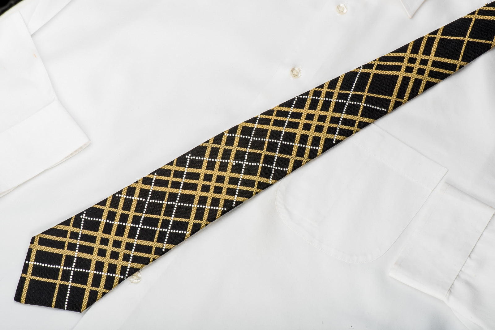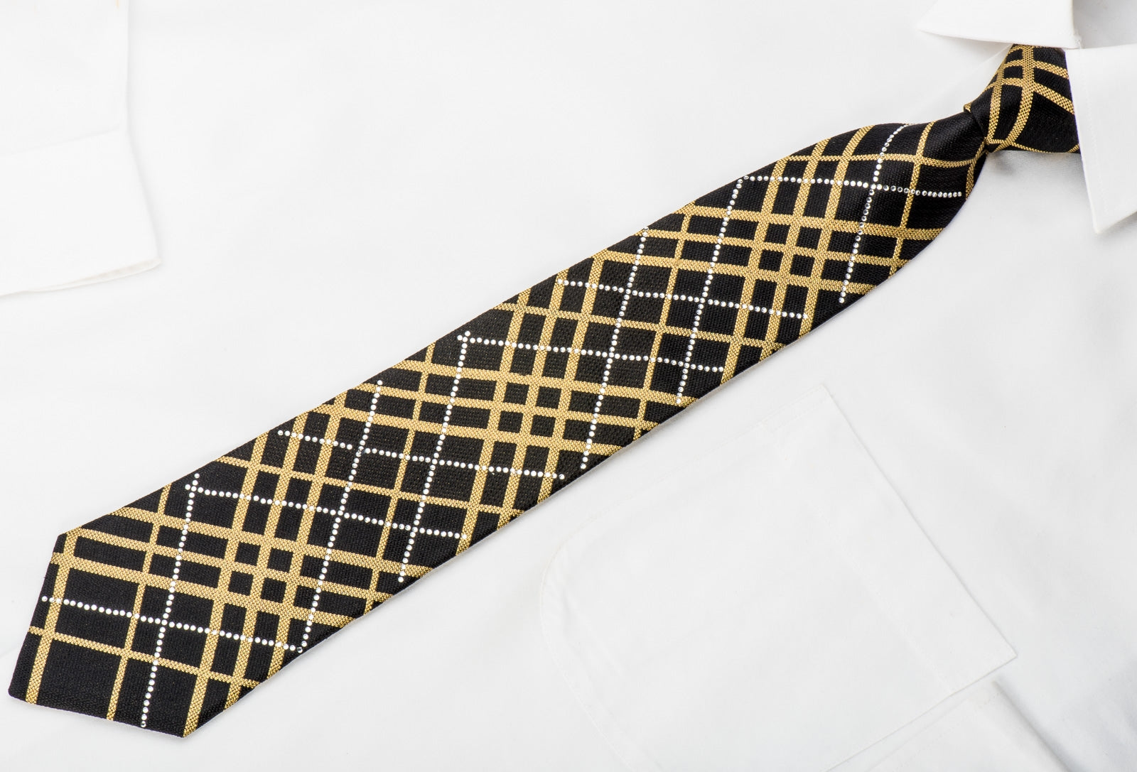 Material - Seda Design - Listrado Cor - Ouro Preto Comprimento - Clássico (57 pol.-60 pol.)(145 cm-153 cm) Largura - Clássico (3 1/4 pol.-3 3/4 pol.)(8 cm-9,5 cm) Recursos especiais - Brilhos Dourados, Strass Brancos Fornecedor - San-Dee