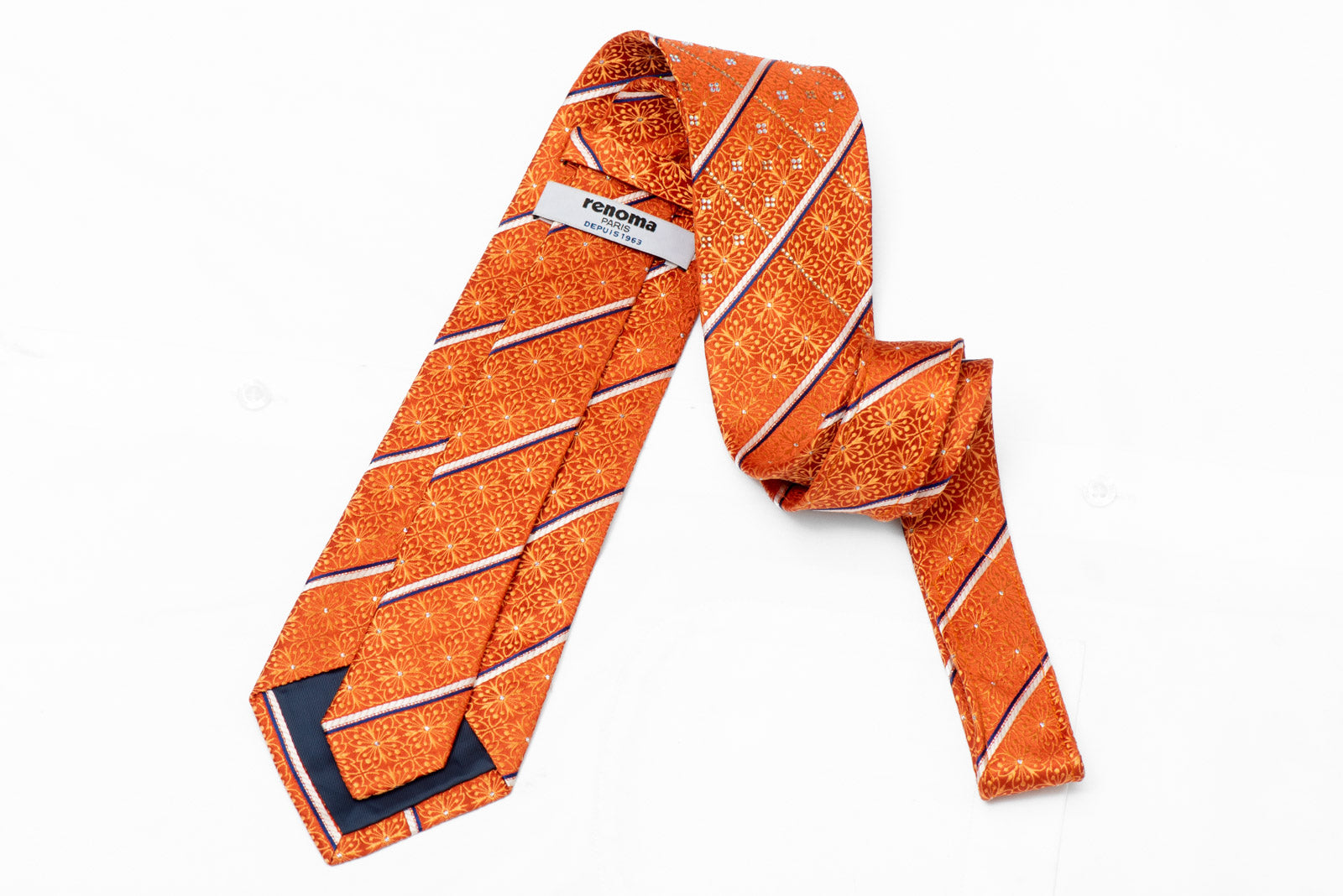 Material - Silk Design - Striped Cor - Orange, Silver Comprimento - Classic (48 in.-60 in.)(145cm-153 cm) Largura - Classic (3 1/4 in.-3 3/4 in.)(8 cm-9.5 cm) Recursos especiais - Rhinestones, Silver Sparkles Fornecedor - Renoma