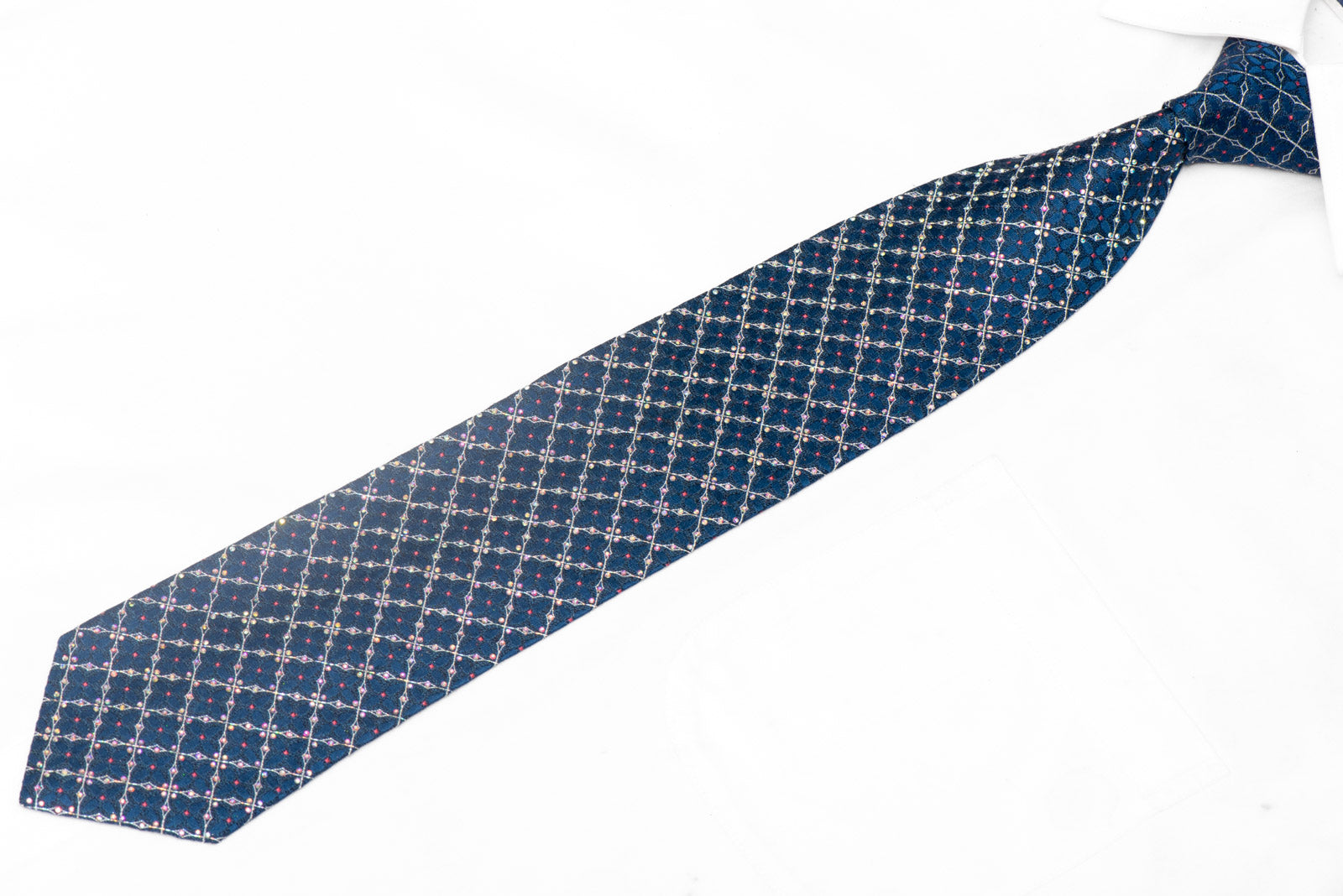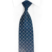 Add some sparkle to your style with our elegant Silver Trellis On Navy Rhinestone Silk Necktie! The perfect accessory for any formal occasion, this necktie is sure to impress with its subtle yet eye-catching details.