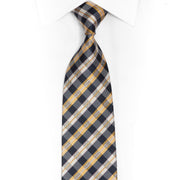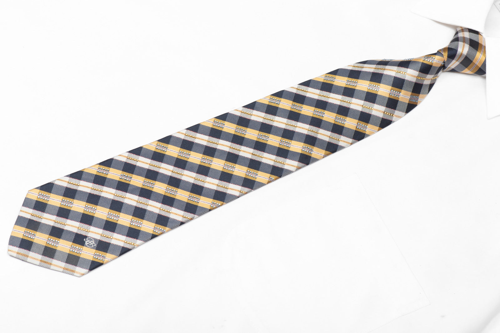 Material - Seda Design - Xadrez Cor - Azul, Amarelo, Prata Comprimento - Clássico (48 pol.-60 pol.)(145 cm-153 cm) Largura - Clássico (3 1/4 pol.) (8,5 cm) Recursos especiais - Strass, brilhos prateados Fornecedor - Renoma
